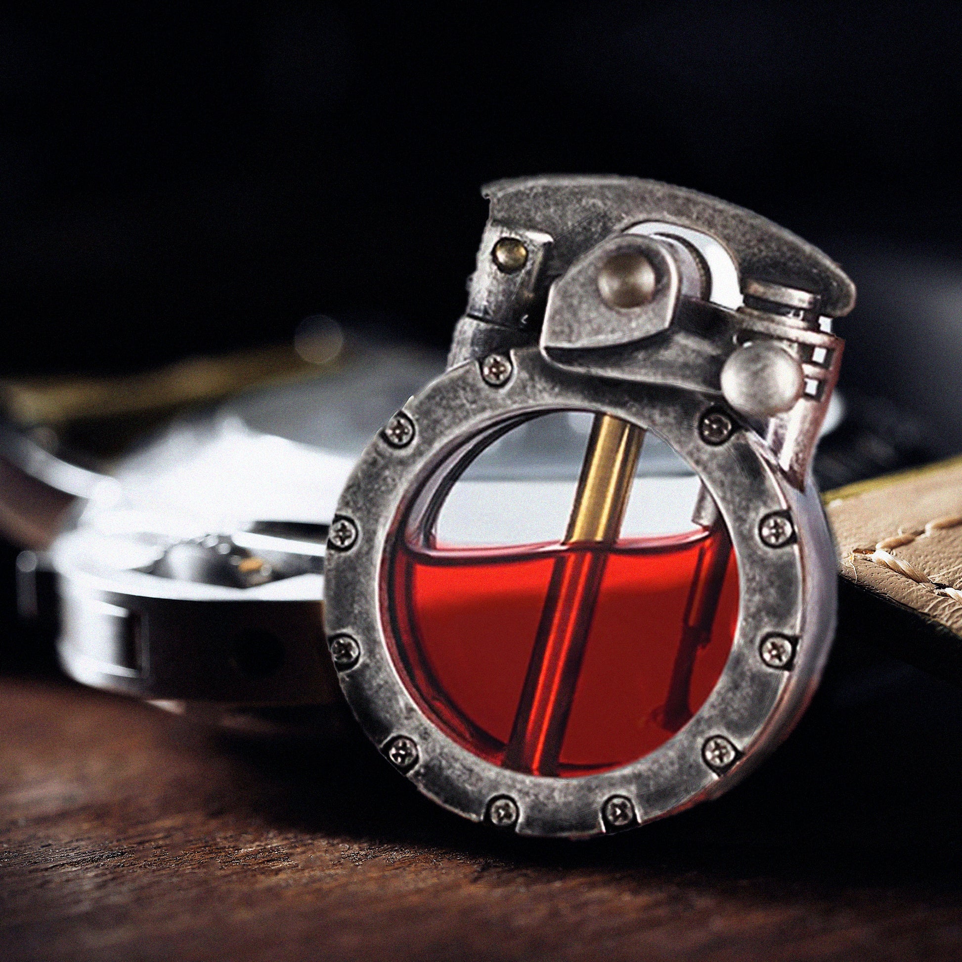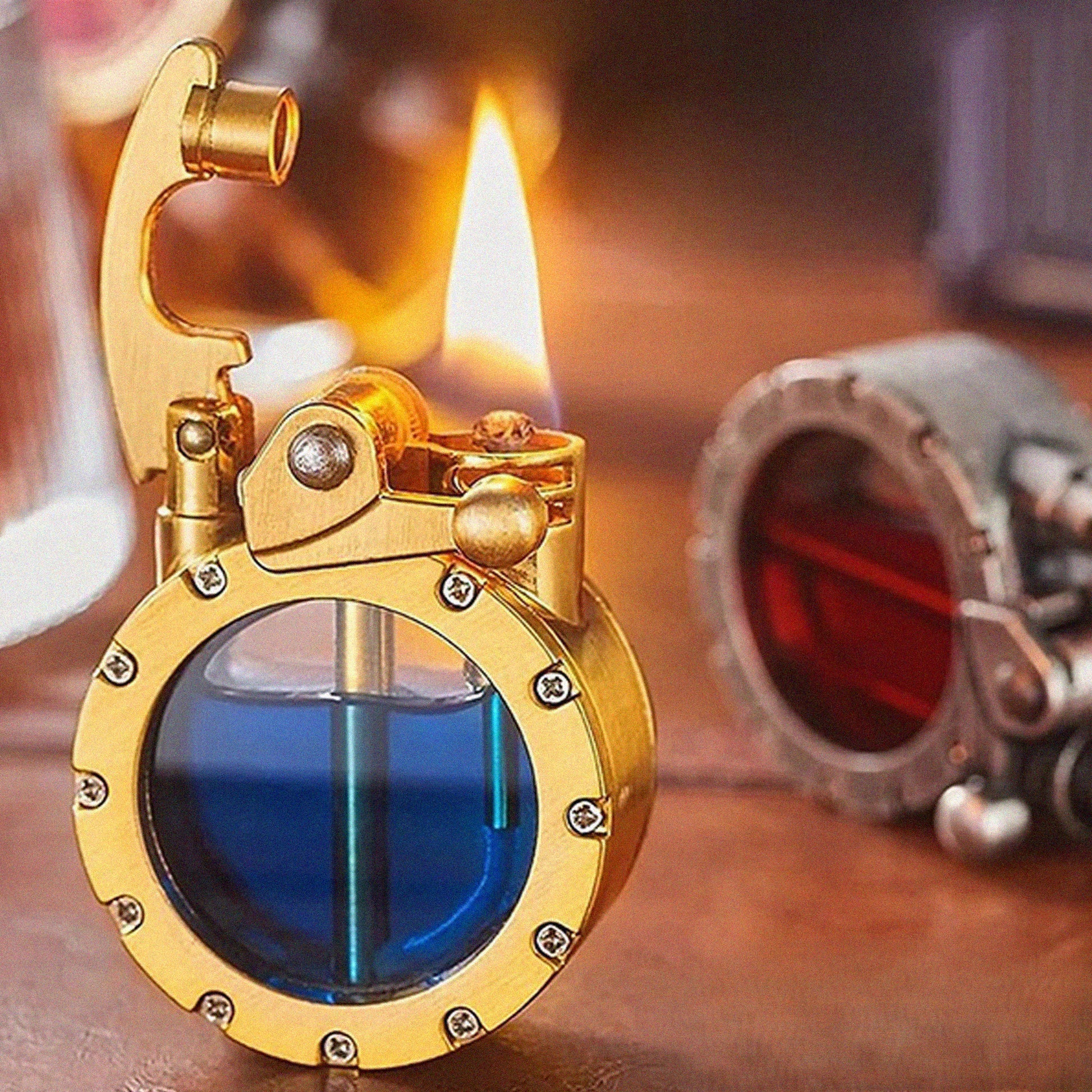 Resistente con finiture pregiate, l’accendino Flamma Aurea si distingue per il suo fascino vintage. Il serbatoio trasparente non solo aggiunge un tocco originale ma permette anche di controllare il livello del carburante. Un oggetto raffinato pensato per collezionisti ed estimatori di stile.