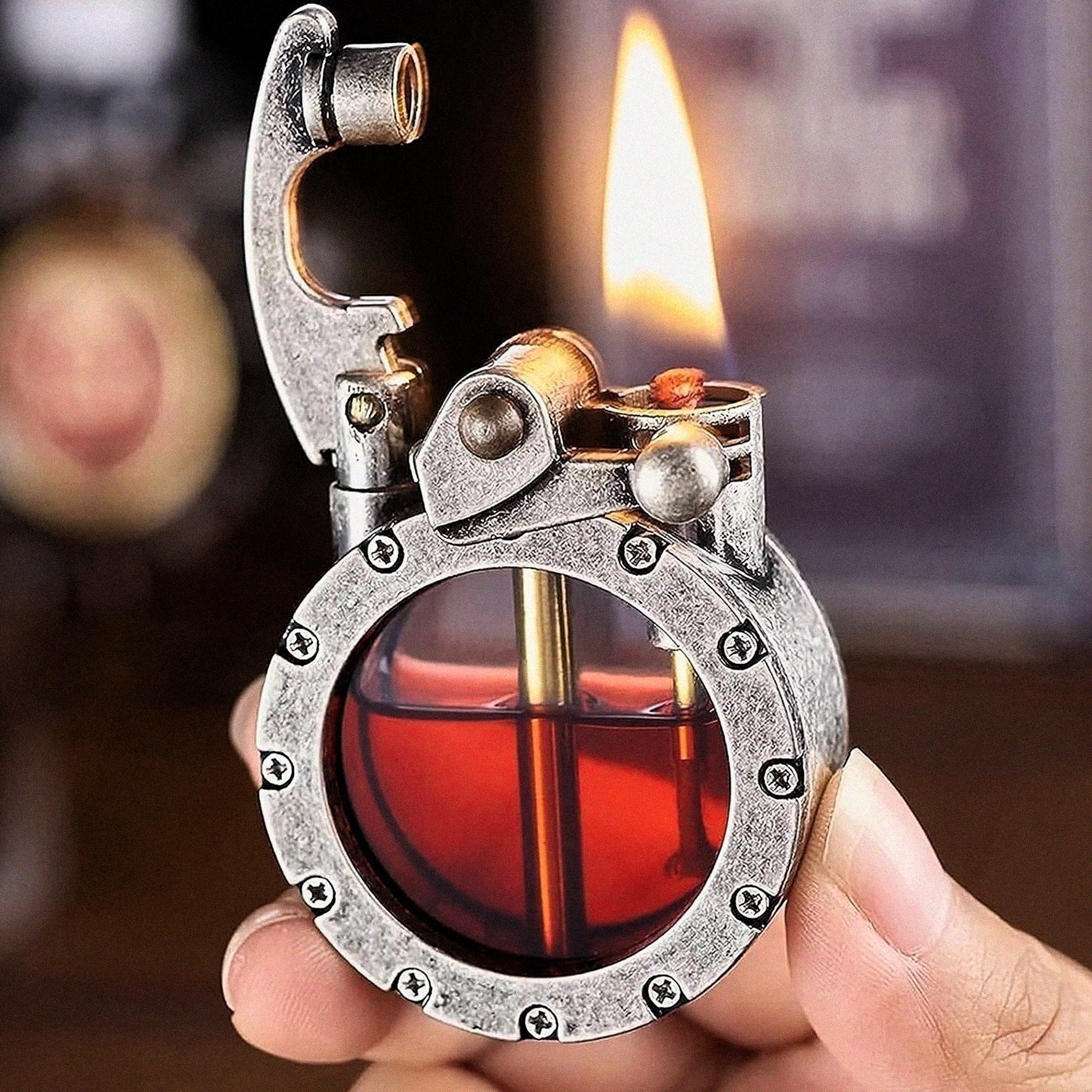 Il design ricaricabile dell’accendino consente un utilizzo prolungato, riducendo sprechi e sostituzioni. Con una semplice ricarica di kerosene, è pronto per accompagnarti a lungo. Una scelta pratica ed eco-friendly per chi vuole un accessorio durevole e sostenibile.